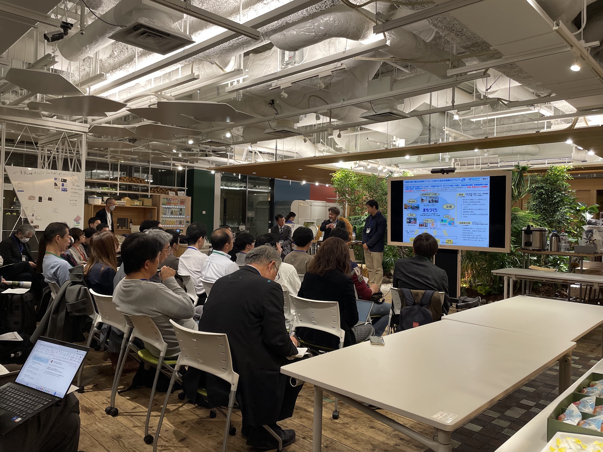 会場には経営者・スタートアップ・マスコミ・大企業人材など約60名が集まり、当日は庄原の食を味わいながら、土地の魅力や、芸備線をはじめとする地域が抱える課題について参加者同士で意見を交わしました。
